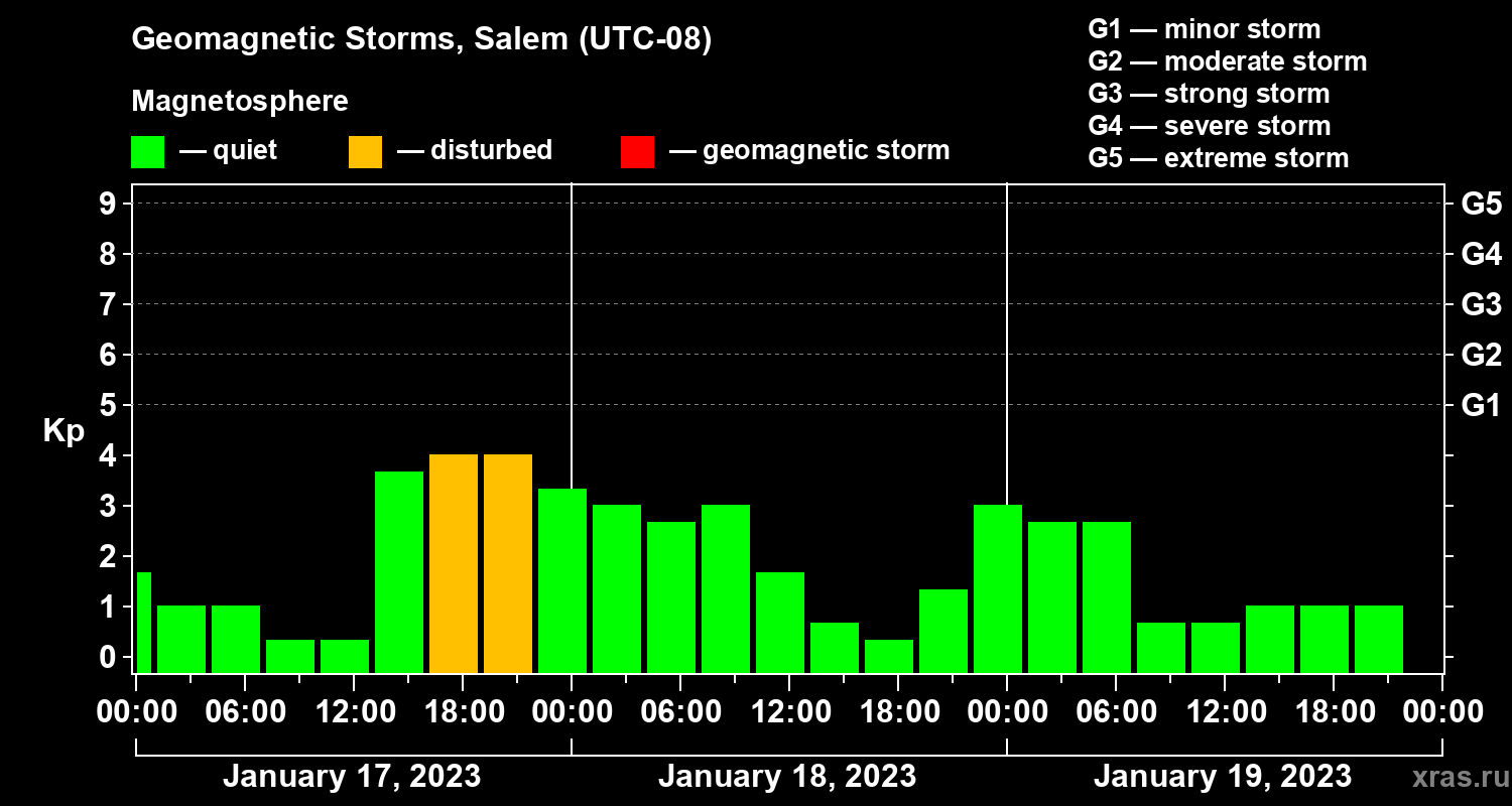Changes in the geomagnetic index Kp from January 17 to 19, 2023 for mid latitudes