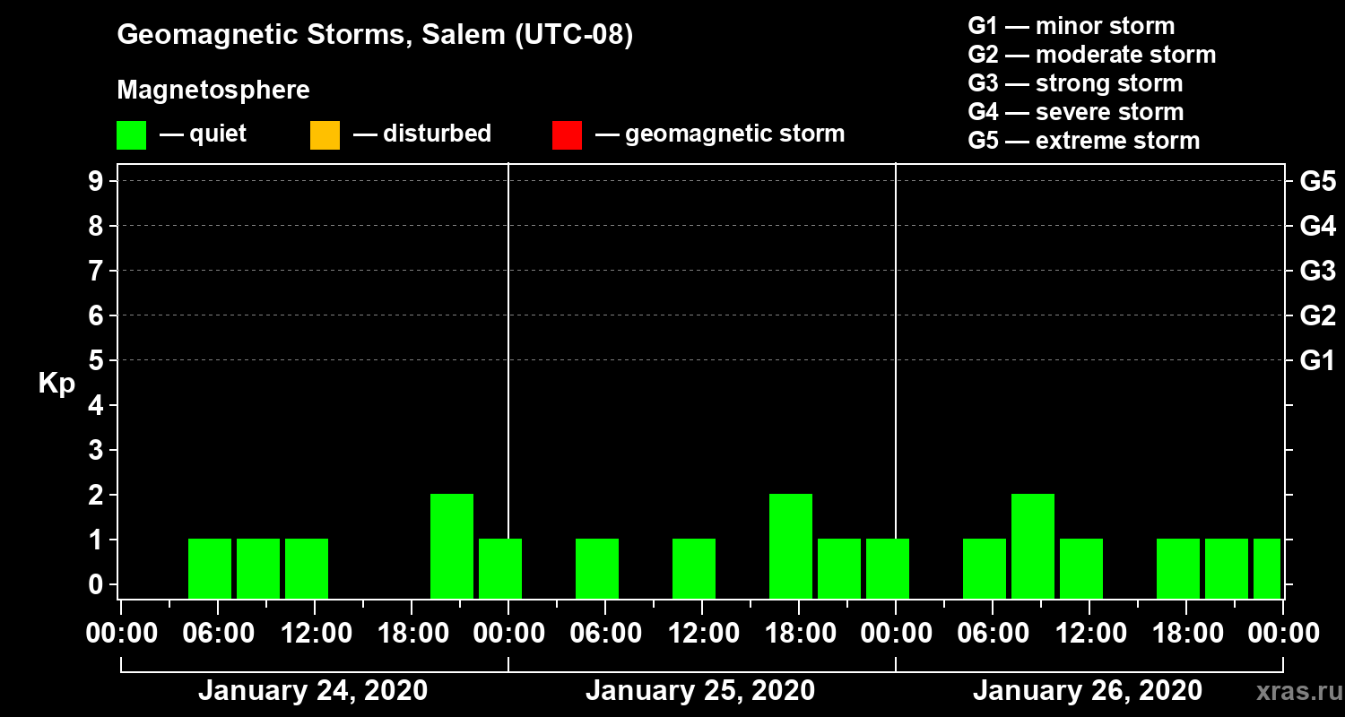 Changes in the geomagnetic index Kp from January 24 to 26, 2020 for mid latitudes