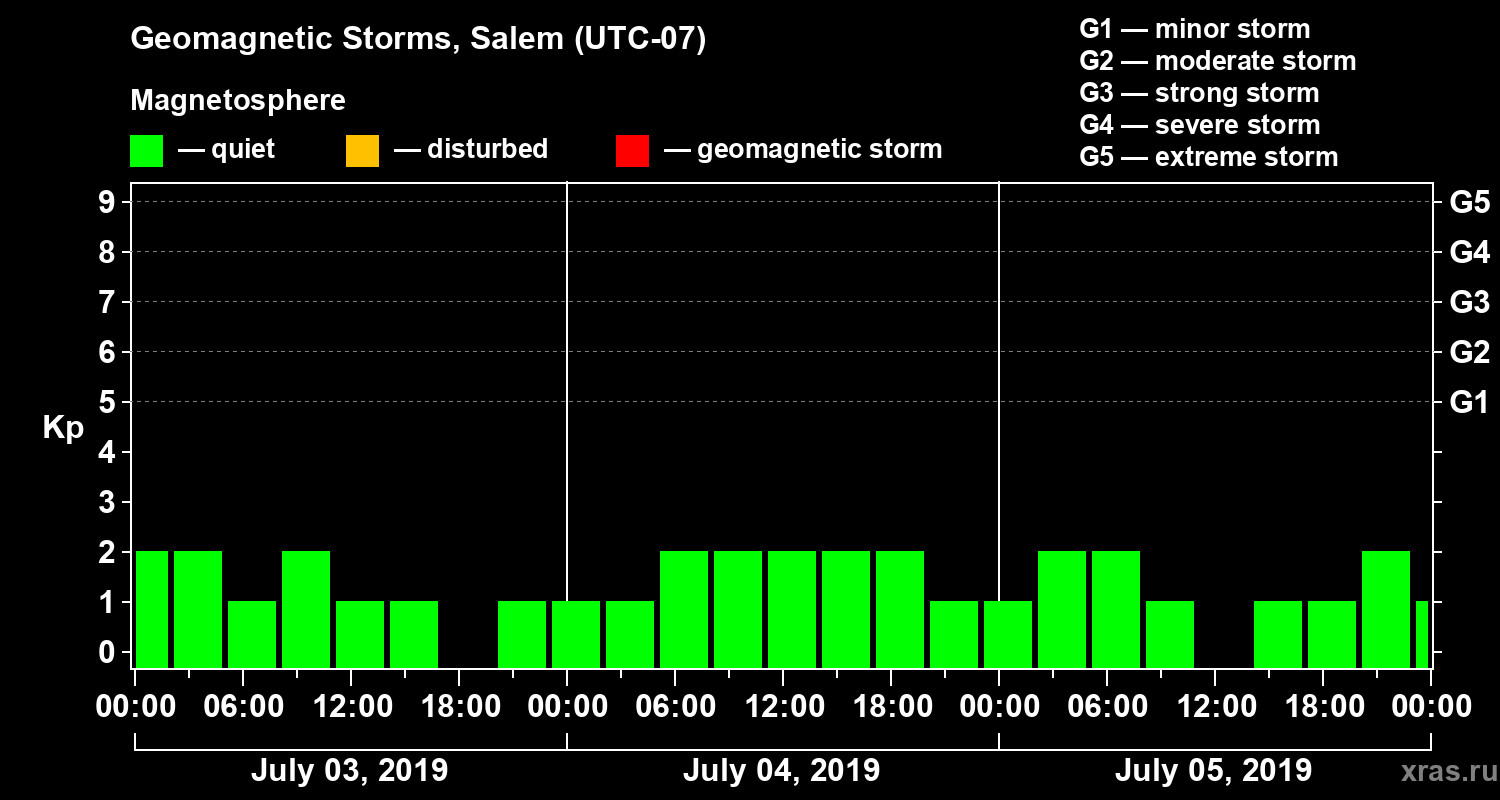 Changes in the geomagnetic index Kp from July 3 to 5, 2019 for mid latitudes