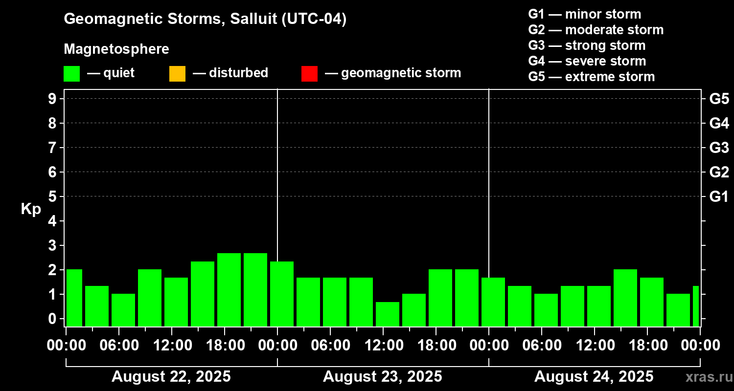 Geomagnetic storms in Salluit — Aug 24, 2025