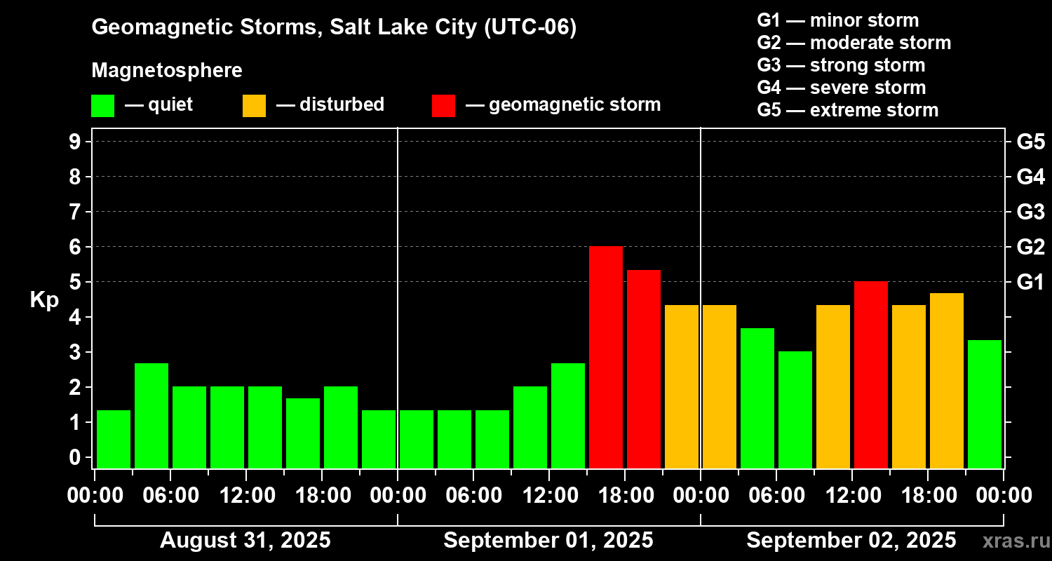 Geomagnetic storms in Salt Lake City on Sep 02, 2025