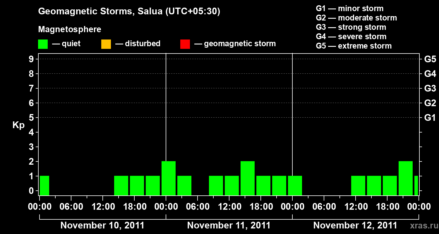 Changes in the geomagnetic index Kp from November 10 to 12, 2011 for mid latitudes
