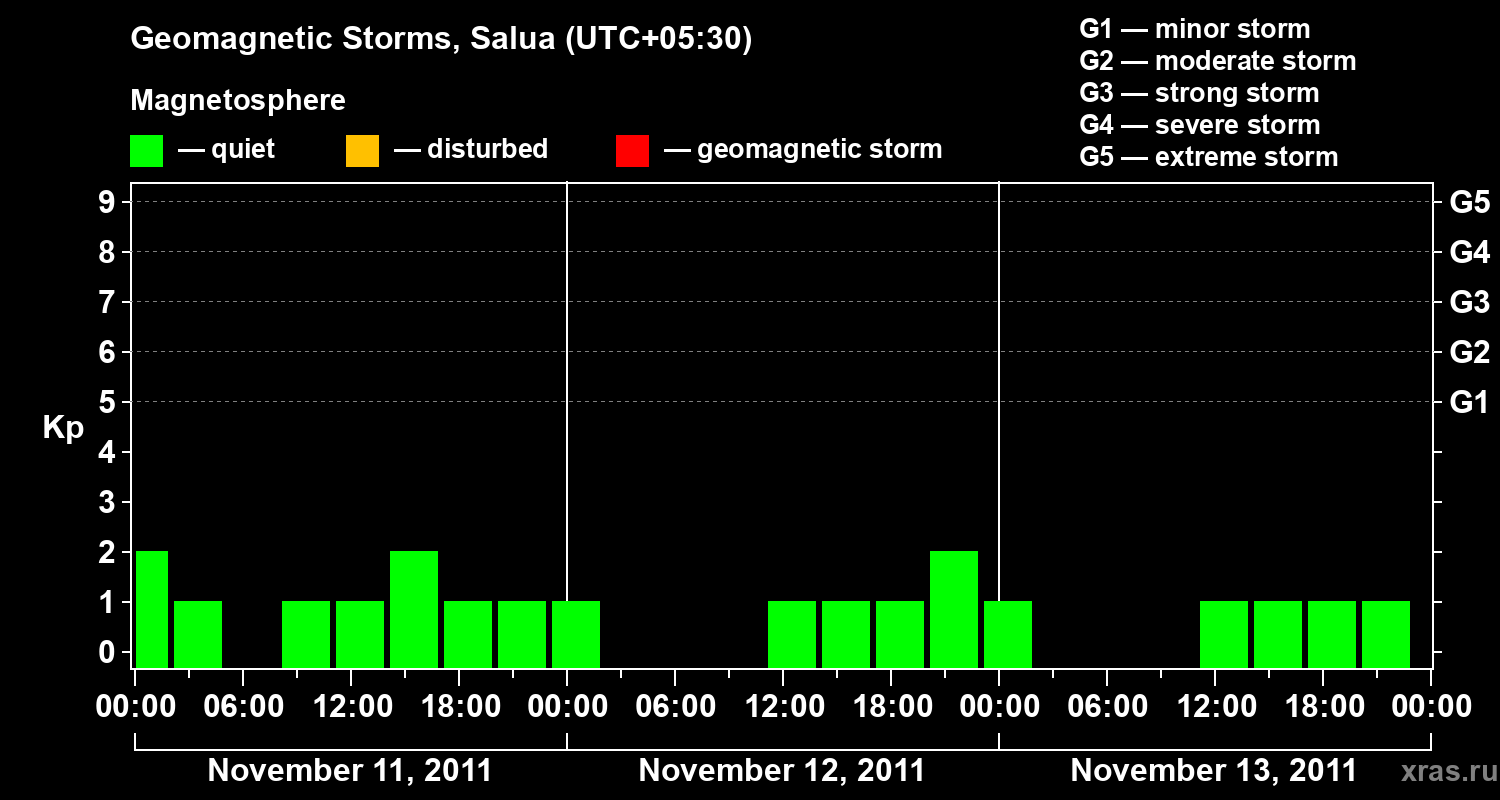 Changes in the geomagnetic index Kp from November 11 to 13, 2011 for mid latitudes