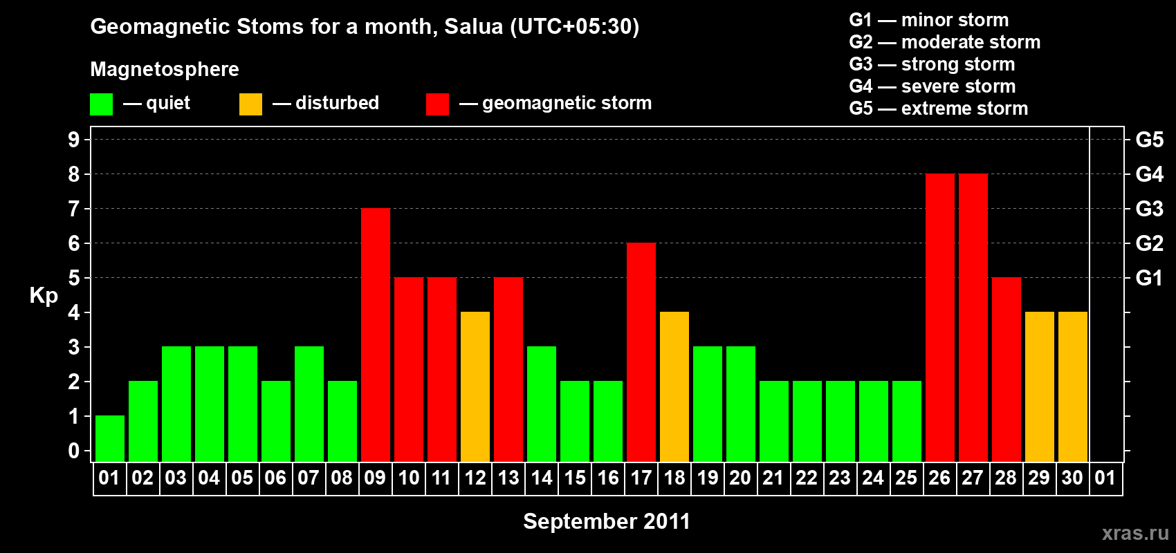 Geomagnetic storms in Salua — Sep 30, 2011