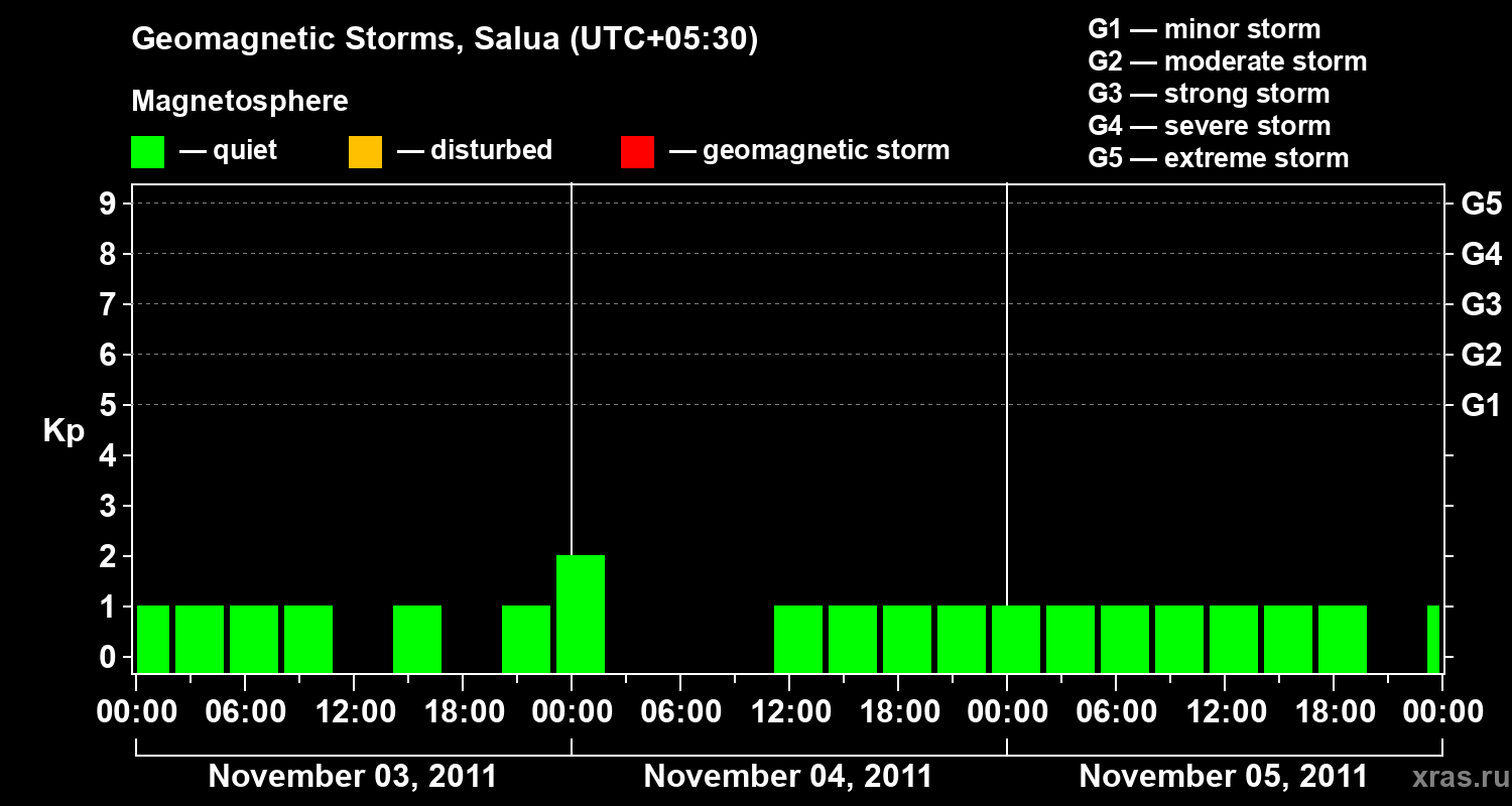 Changes in the geomagnetic index Kp from November 3 to 5, 2011 for mid latitudes