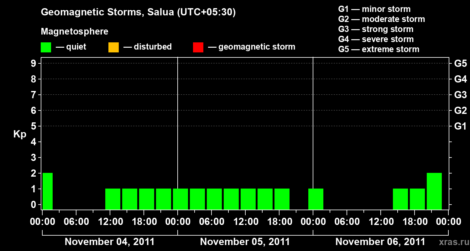 Changes in the geomagnetic index Kp from November 4 to 6, 2011 for mid latitudes