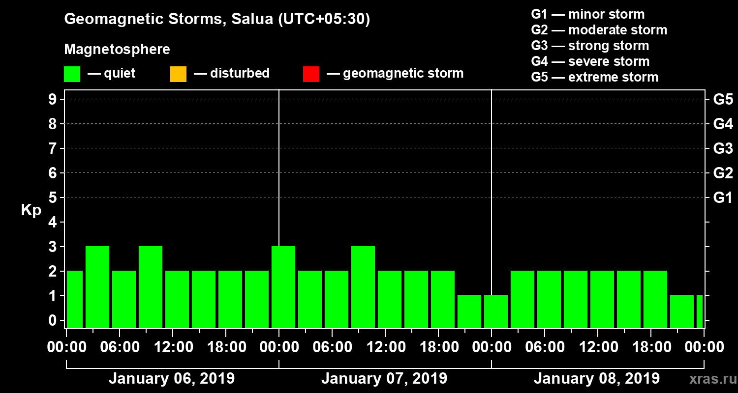 Changes in the geomagnetic index Kp from January 6 to 8, 2019 for mid latitudes