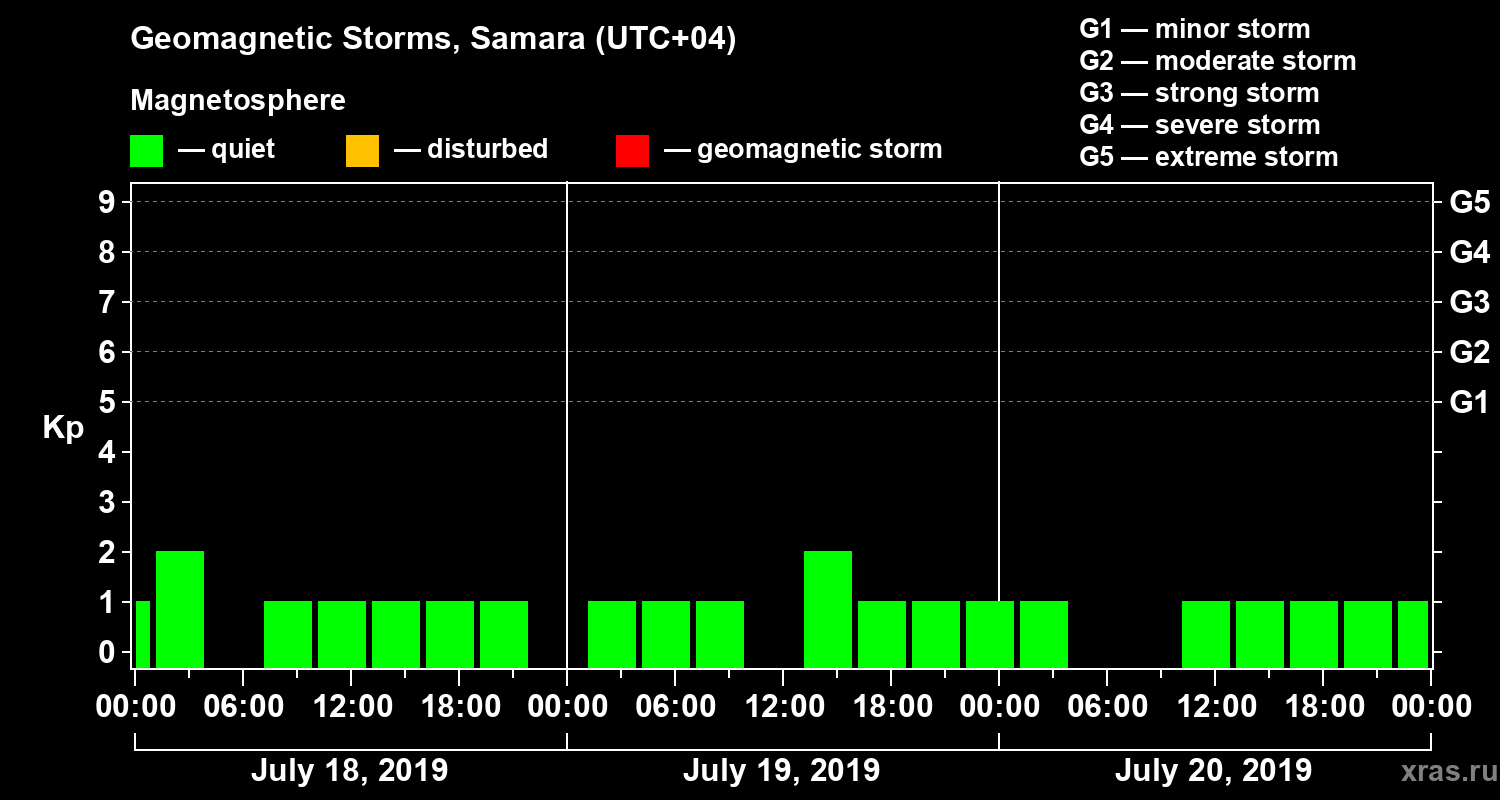 Changes in the geomagnetic index Kp from July 18 to 20, 2019 for mid latitudes
