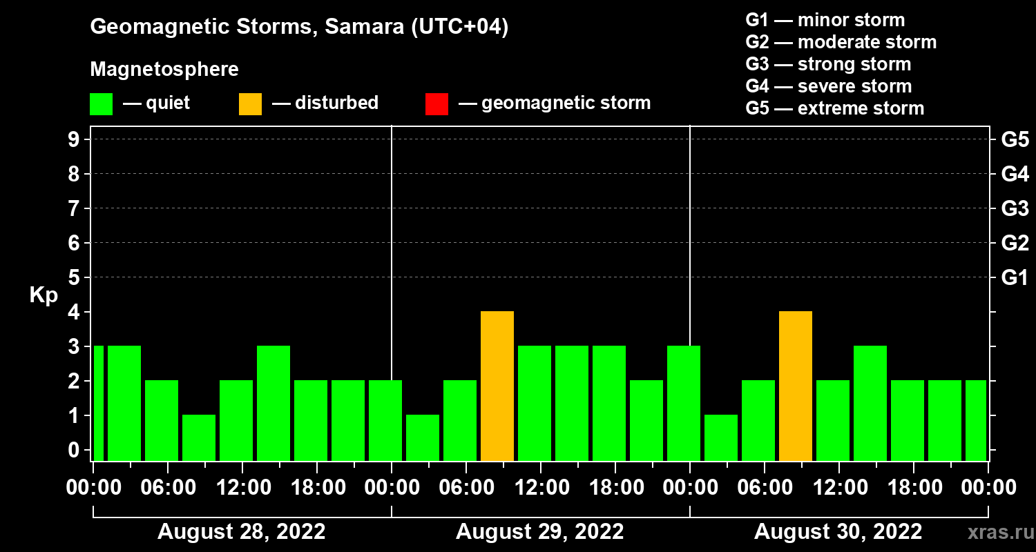 Geomagnetic storms in Samara on Aug 30, 2022