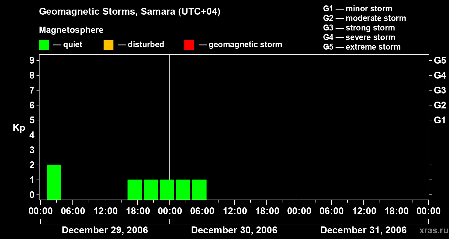 Changes in the geomagnetic index Kp from December 29 to 31, 2006 for mid latitudes