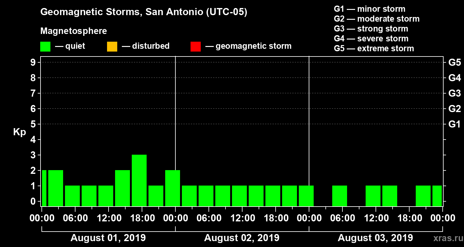 Geomagnetic storms in San Antonio on Aug 03, 2019