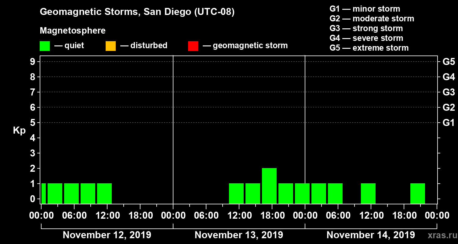 Geomagnetic storms in San Diego on Nov 14, 2019