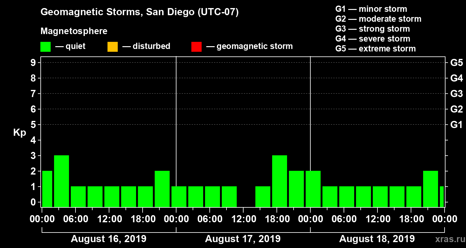 Geomagnetic storms in San Diego on Aug 18, 2019