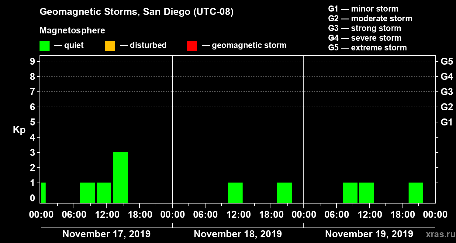 Geomagnetic storms in San Diego on Nov 19, 2019