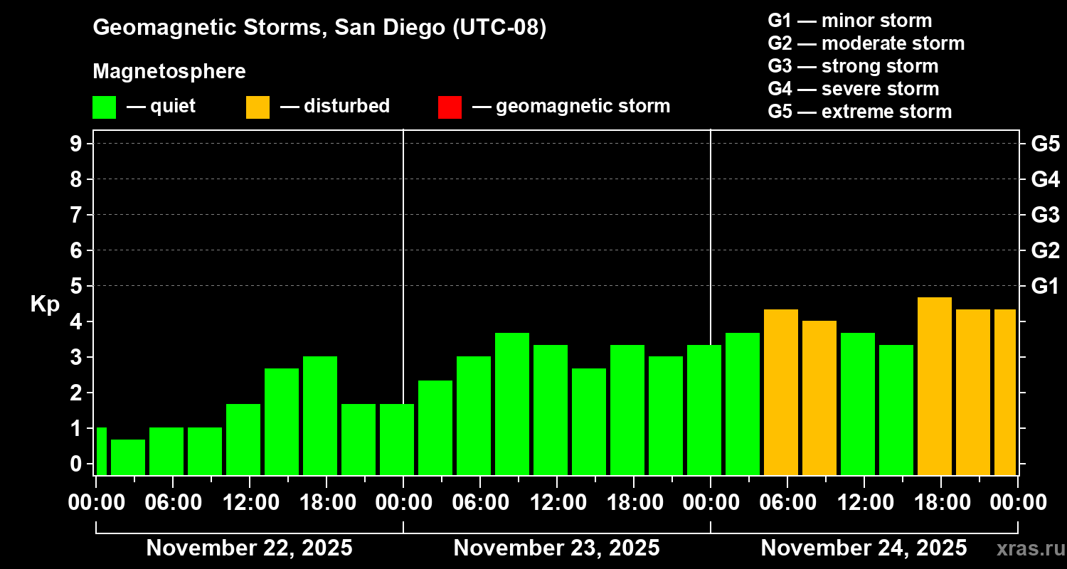 Geomagnetic storms in San Diego — Nov 24, 2025