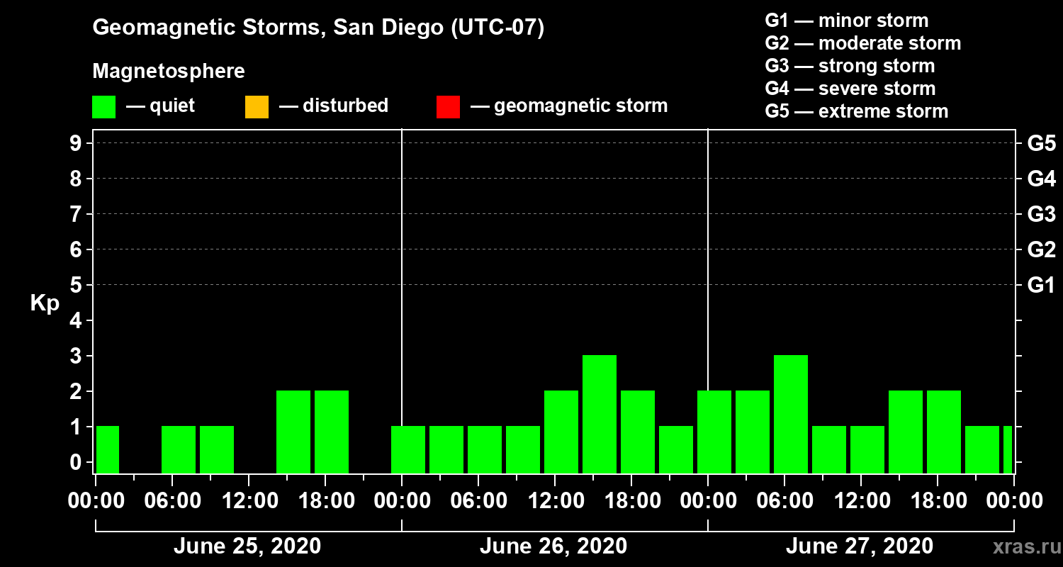 Geomagnetic storms in San Diego — Jun 27, 2020