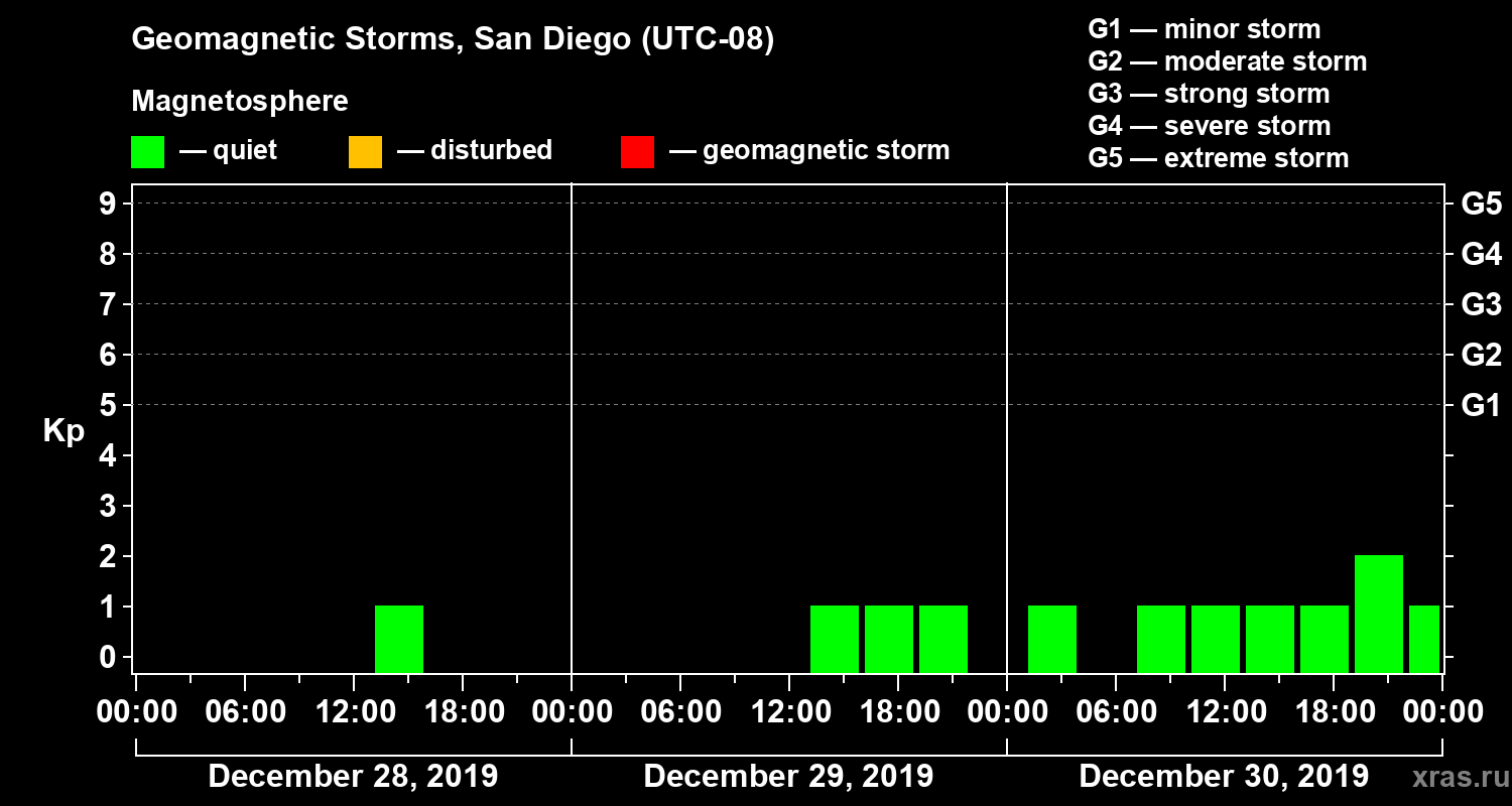 Geomagnetic storms in San Diego on Dec 30, 2019