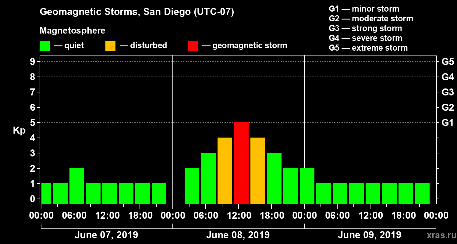 Geomagnetic storms in San Diego — Jun 09, 2019