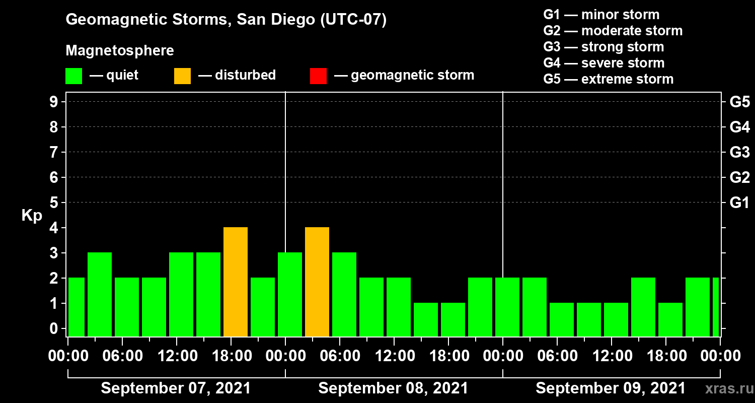 Geomagnetic storms in San Diego — Sep 09, 2021