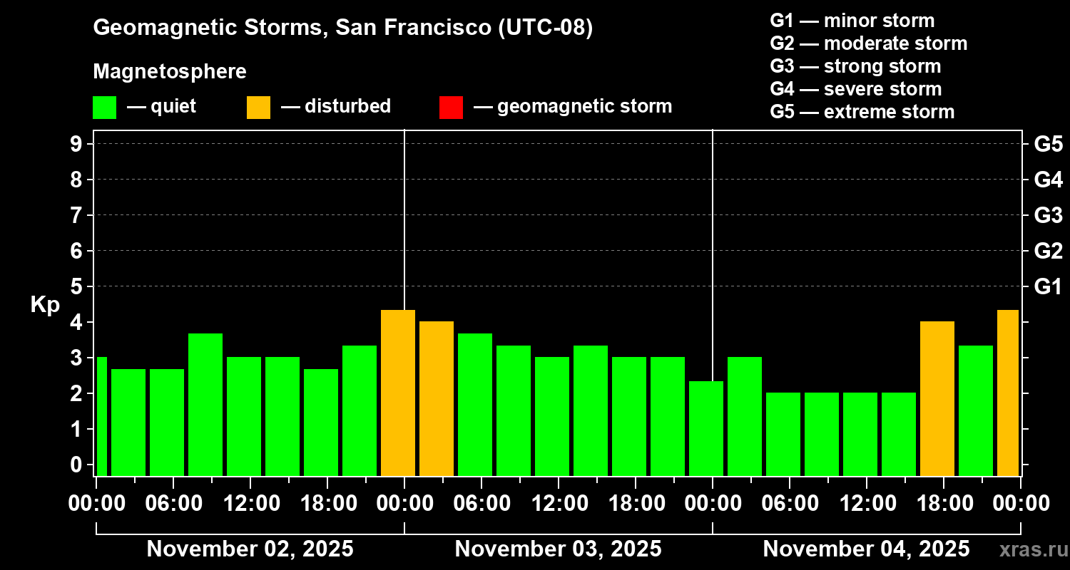 Geomagnetic storms in San Francisco — Nov 04, 2025