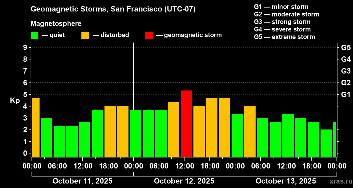 Geomagnetic storms in San Francisco — Oct 13, 2025