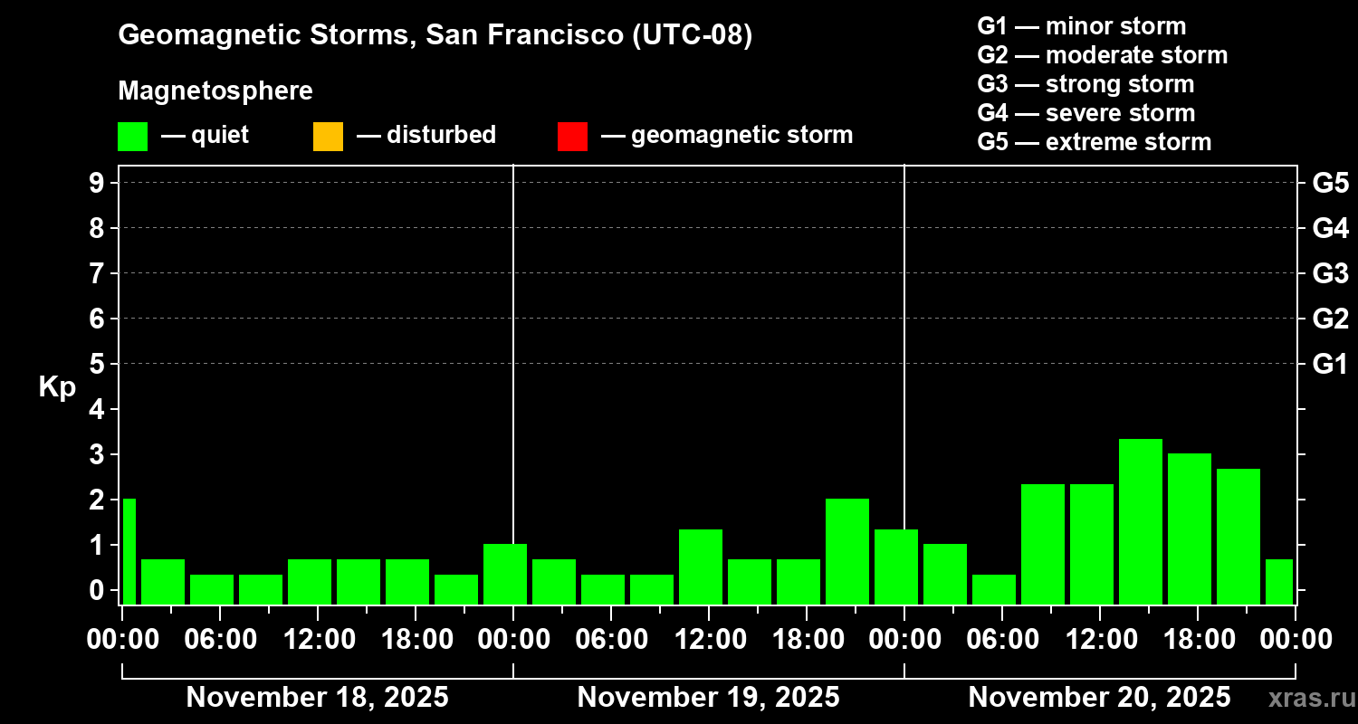 Geomagnetic storms in San Francisco — Nov 20, 2025