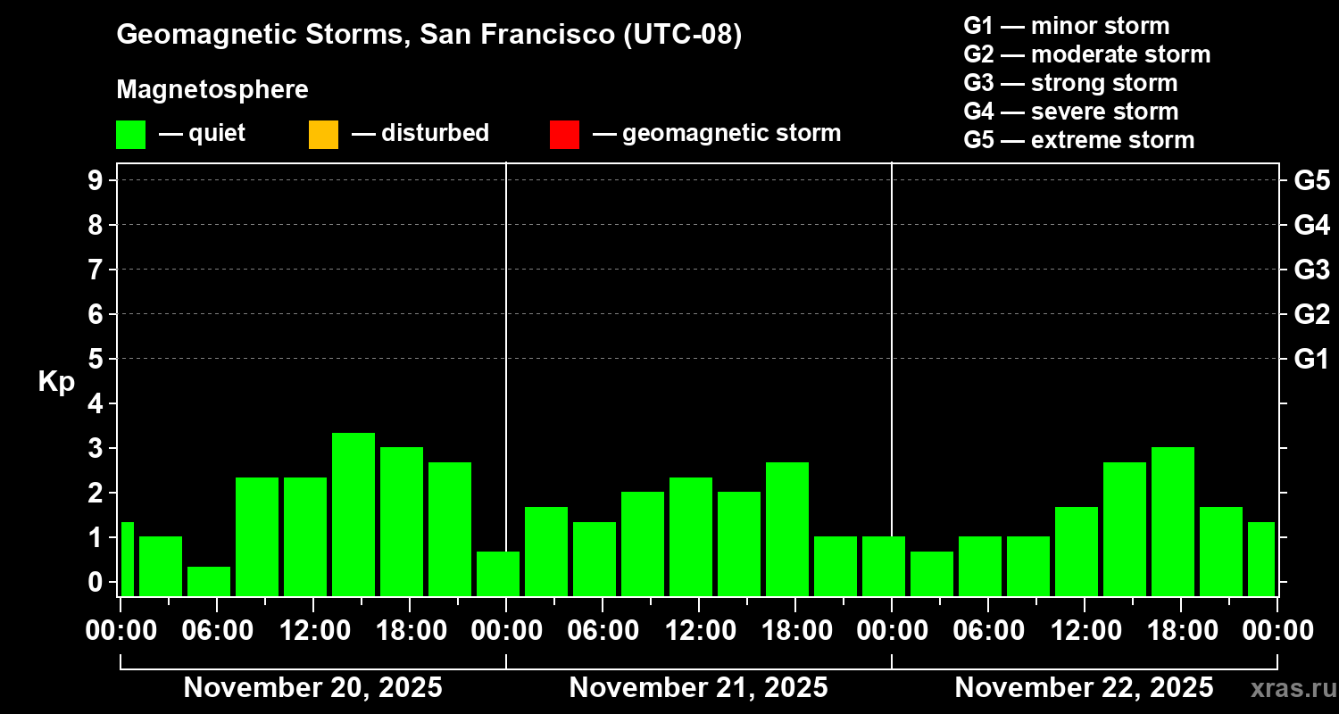 Geomagnetic storms in San Francisco — Nov 22, 2025