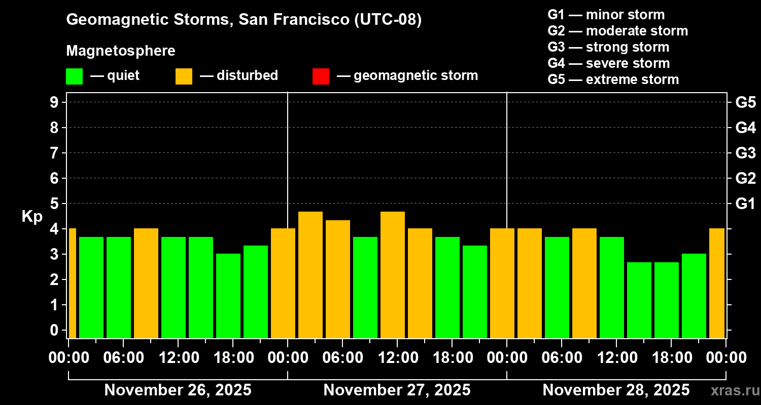 Geomagnetic storms in San Francisco — Nov 28, 2025