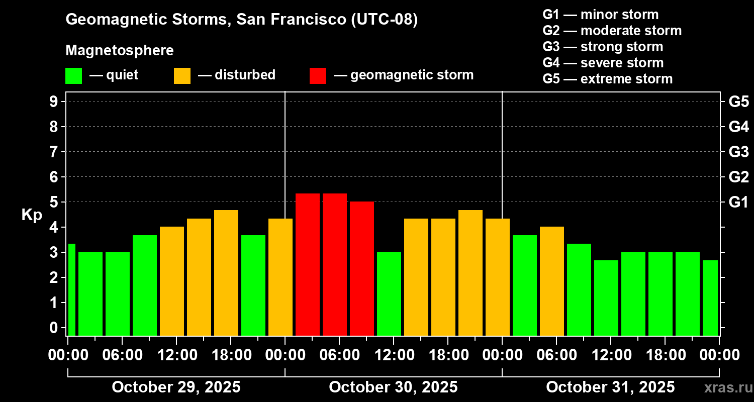 Geomagnetic storms in San Francisco — Oct 31, 2025