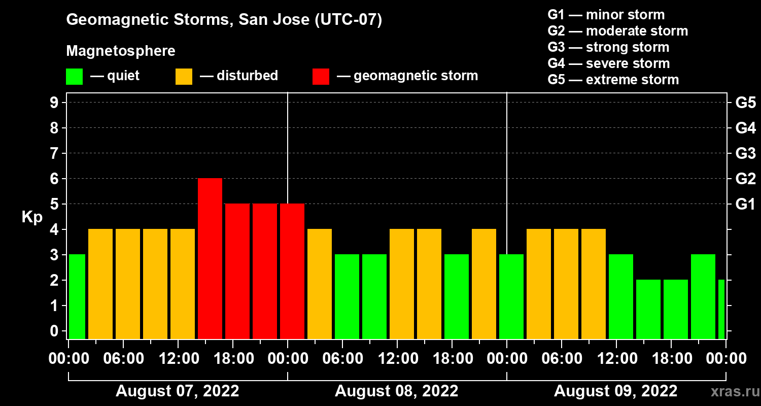 Geomagnetic storms in San Jose — Aug 09, 2022