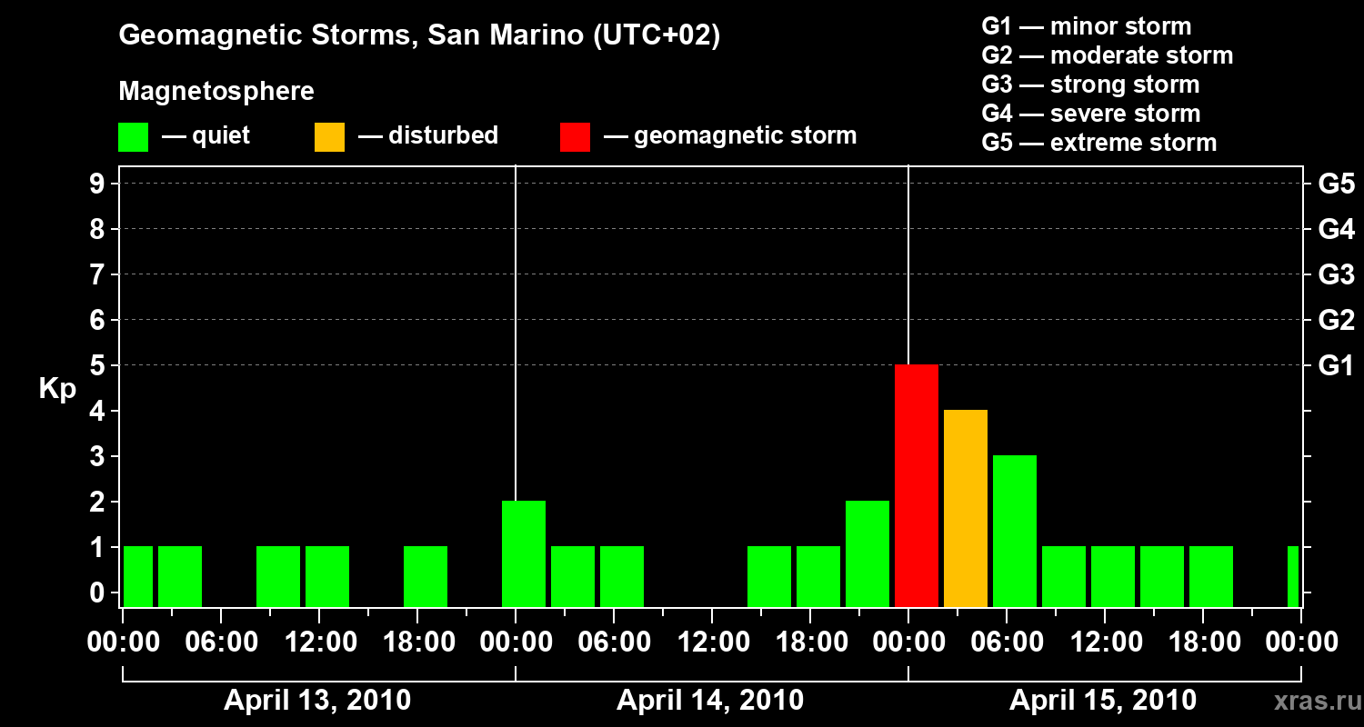 Geomagnetic storms in San Marino — Apr 15, 2010