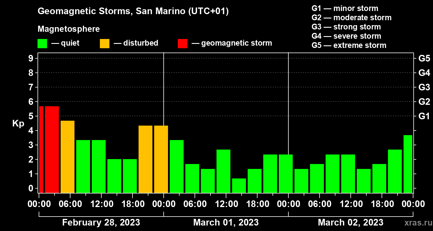 Geomagnetic storms in San Marino — Mar 02, 2023
