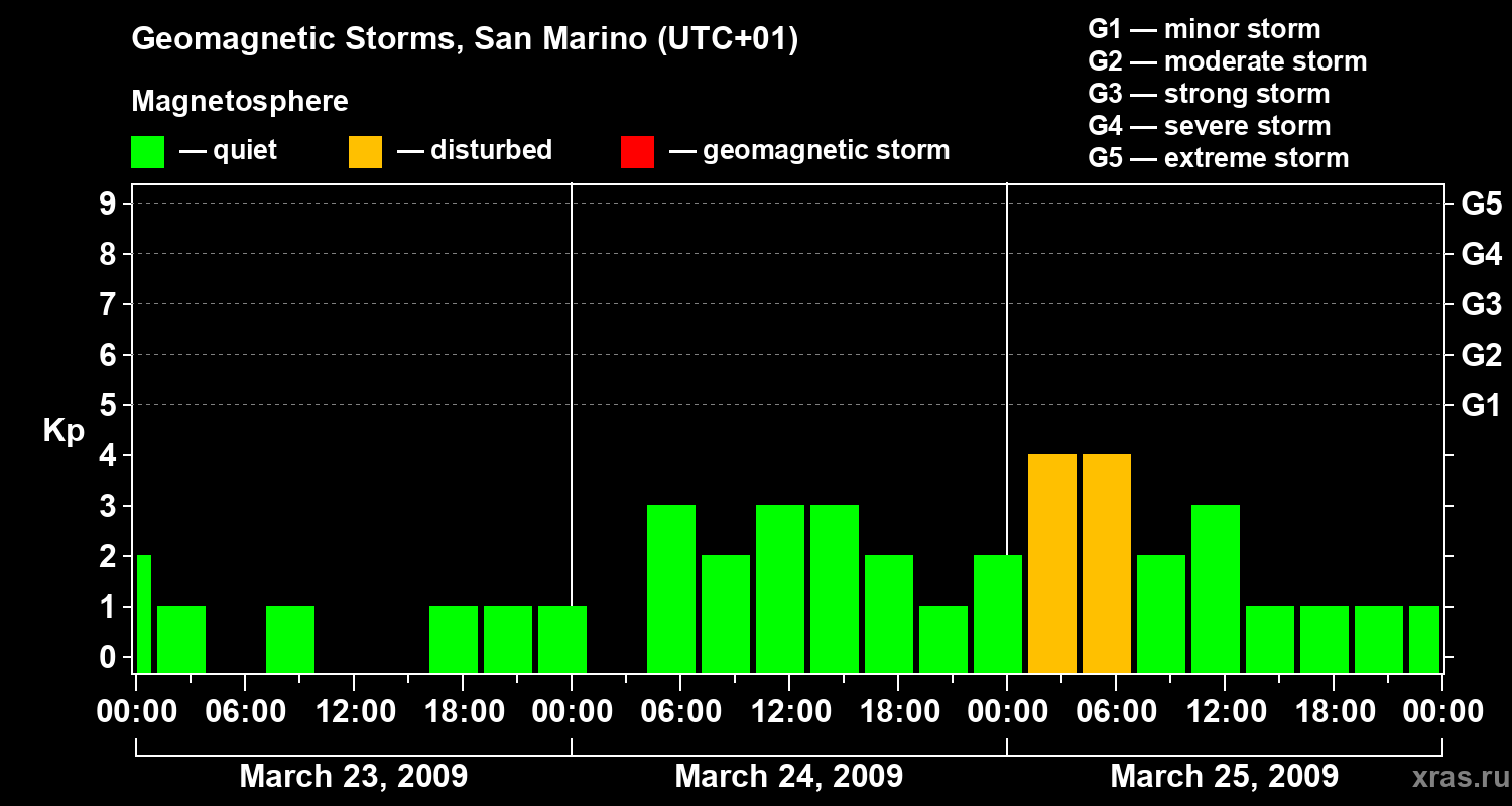 Geomagnetic storms in San Marino — Mar 25, 2009