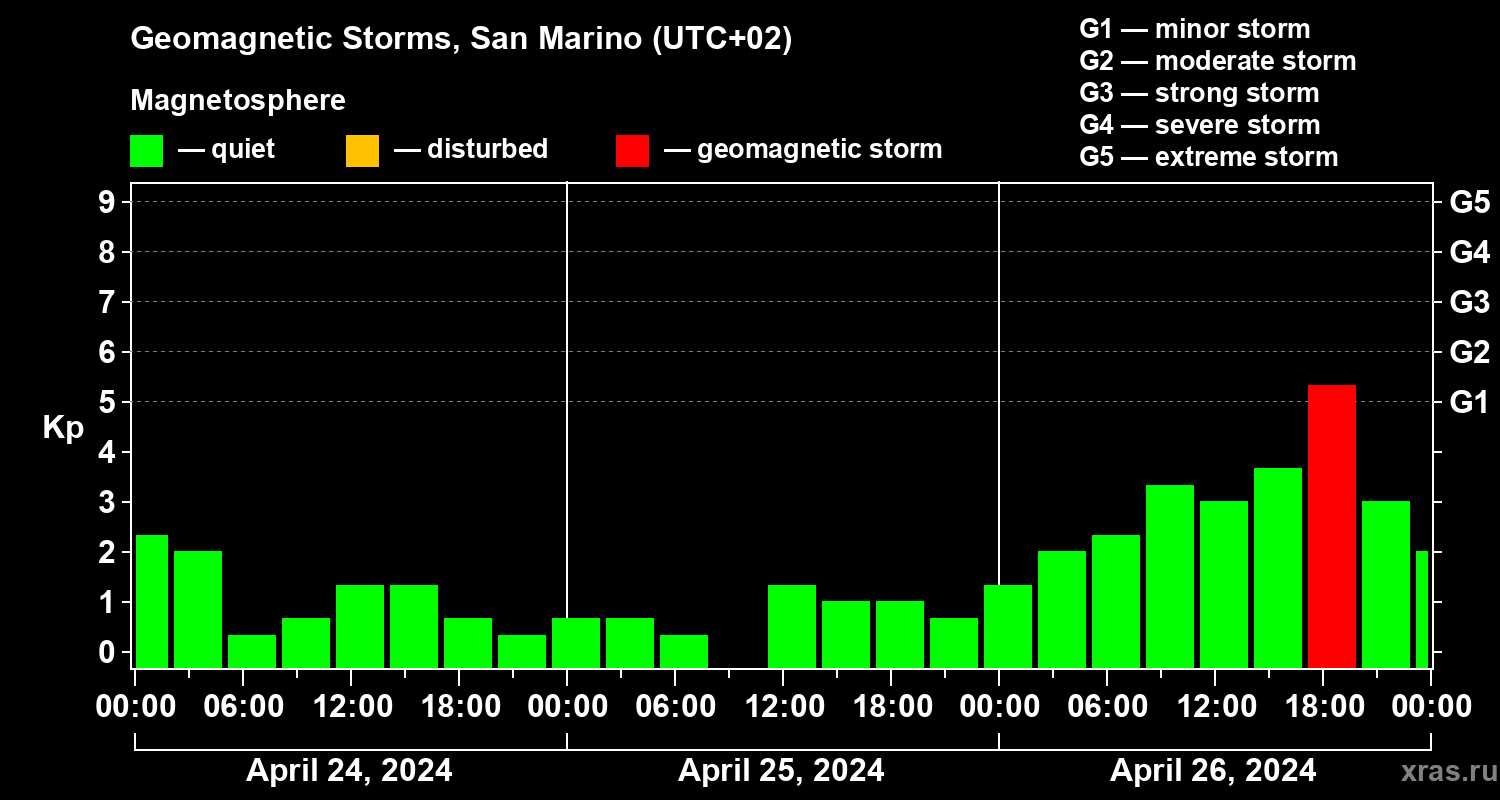 Geomagnetic storms in San Marino — Apr 26, 2024
