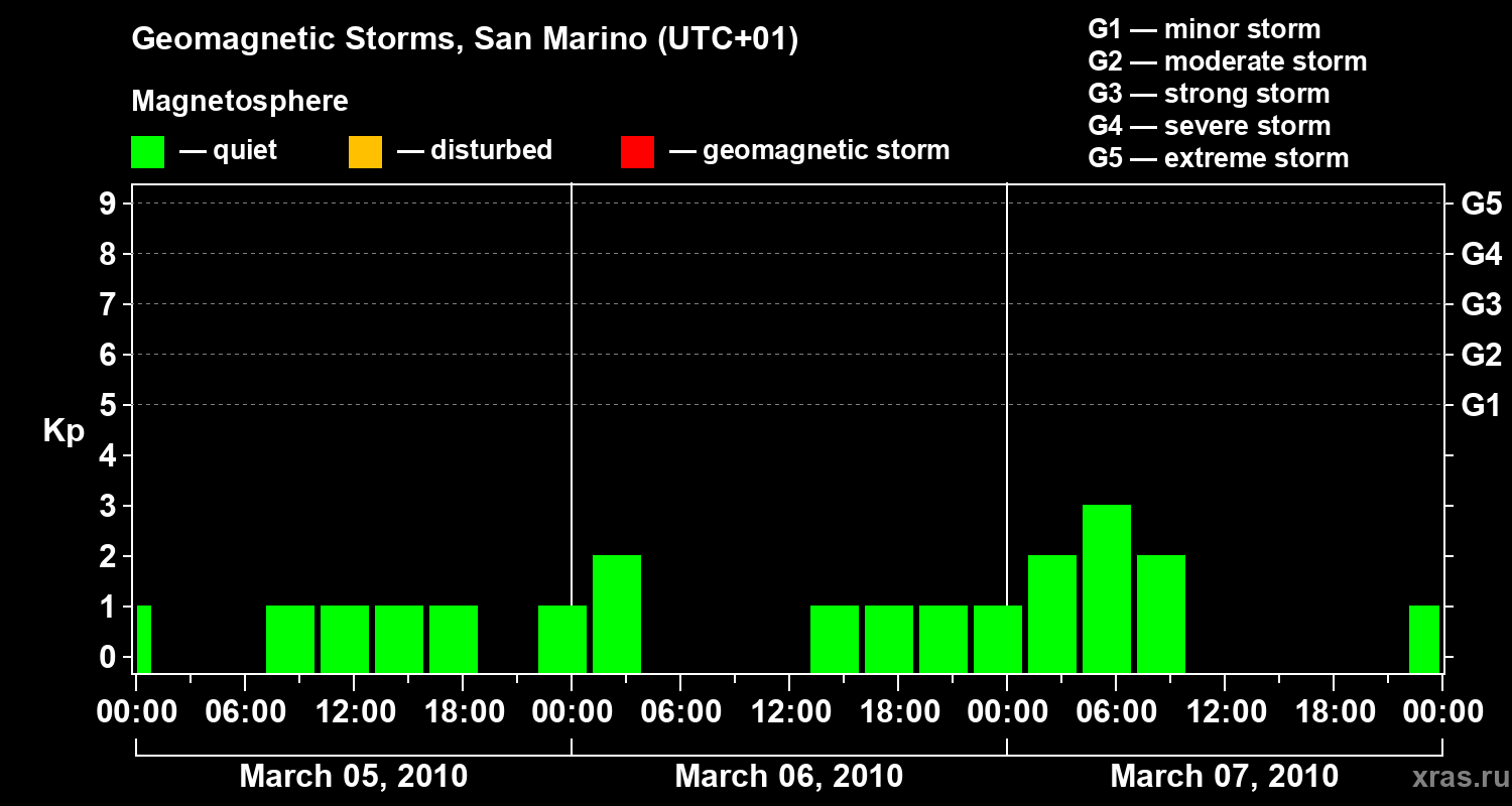 Geomagnetic storms in San Marino — Mar 07, 2010