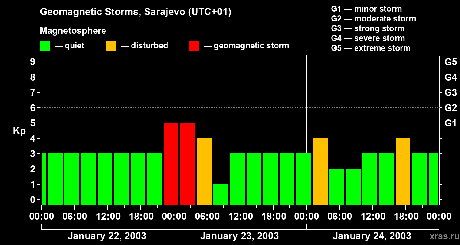 Geomagnetic storms in Sarajevo — Jan 24, 2003