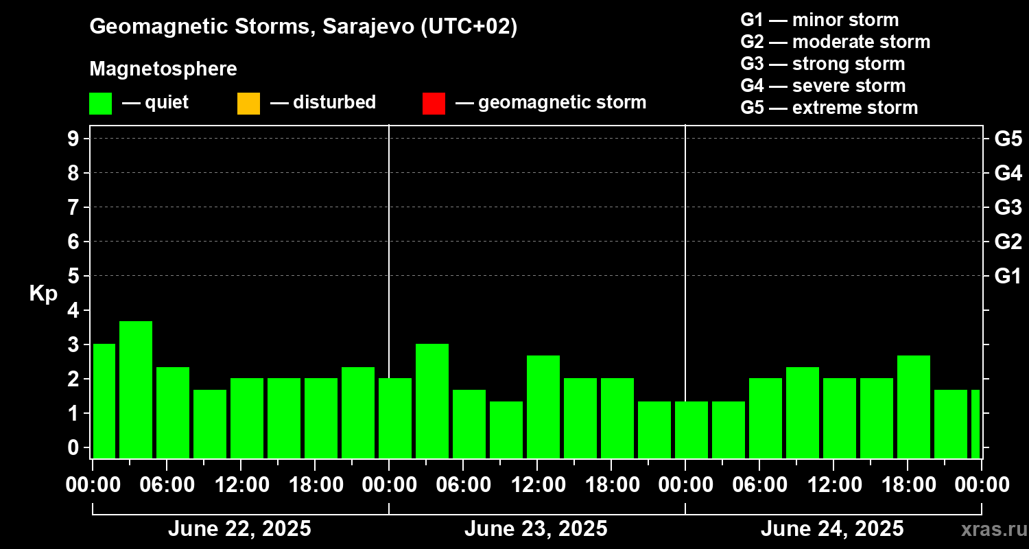 Geomagnetic storms in Sarajevo — Jun 24, 2025