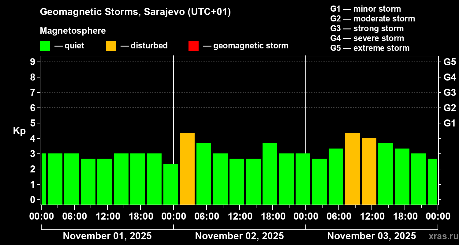 Geomagnetic storms in Sarajevo — Nov 03, 2025