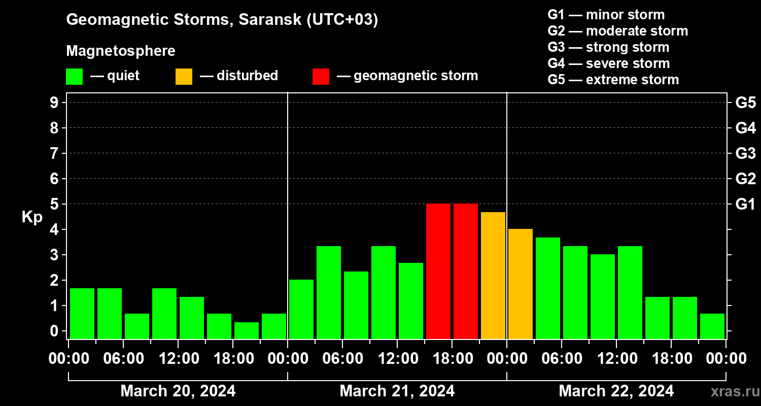 Geomagnetic storms in Saransk — Mar 22, 2024