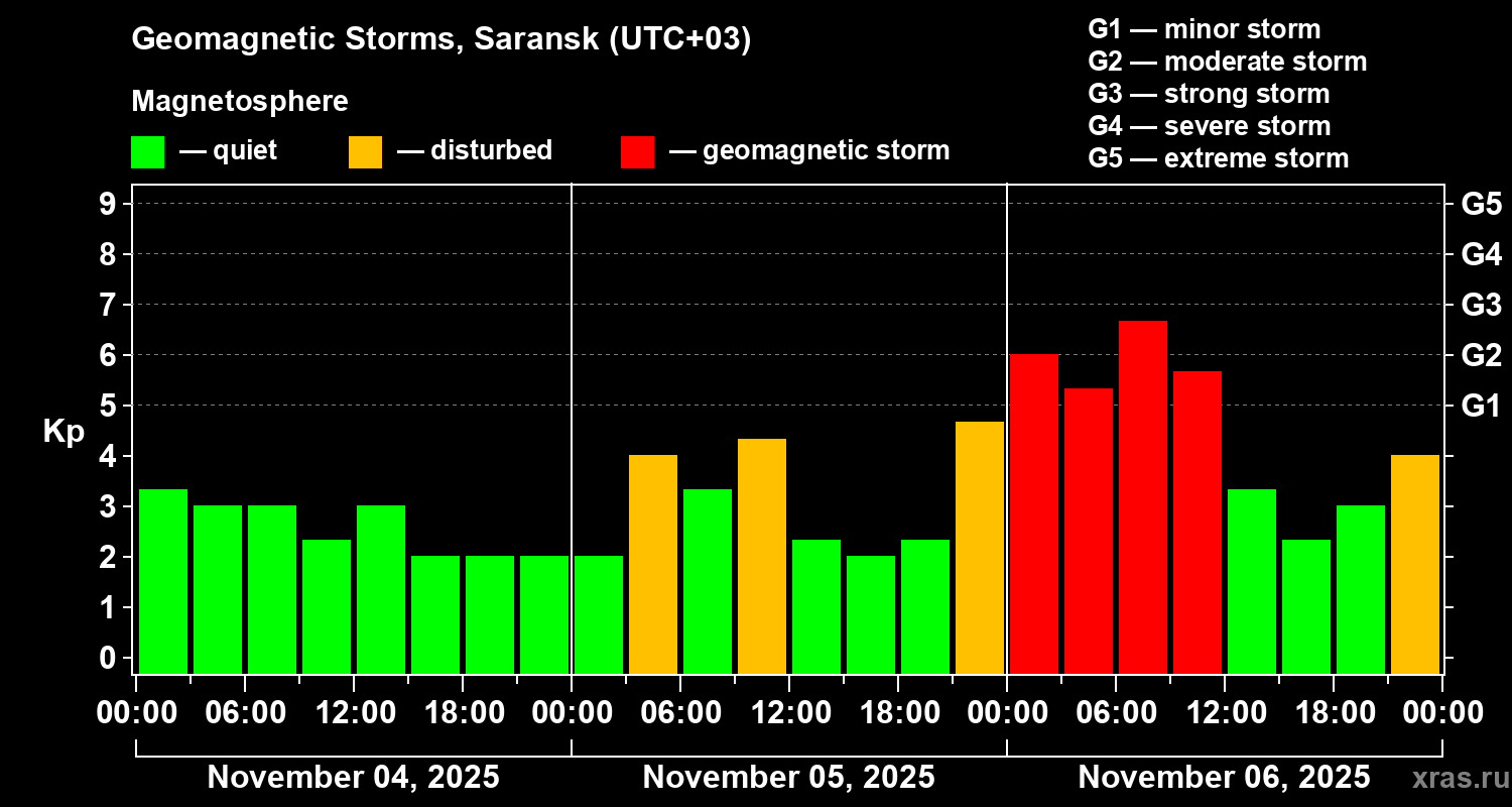 Geomagnetic storms in Saransk — Nov 06, 2025