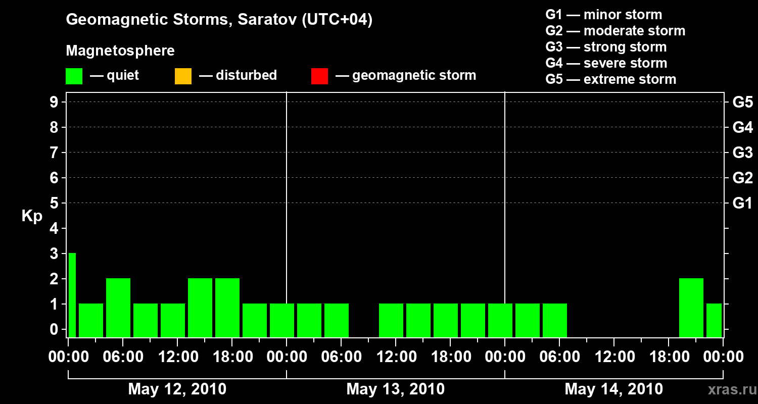 Changes in the geomagnetic index Kp from May 12 to 14, 2010 for mid latitudes