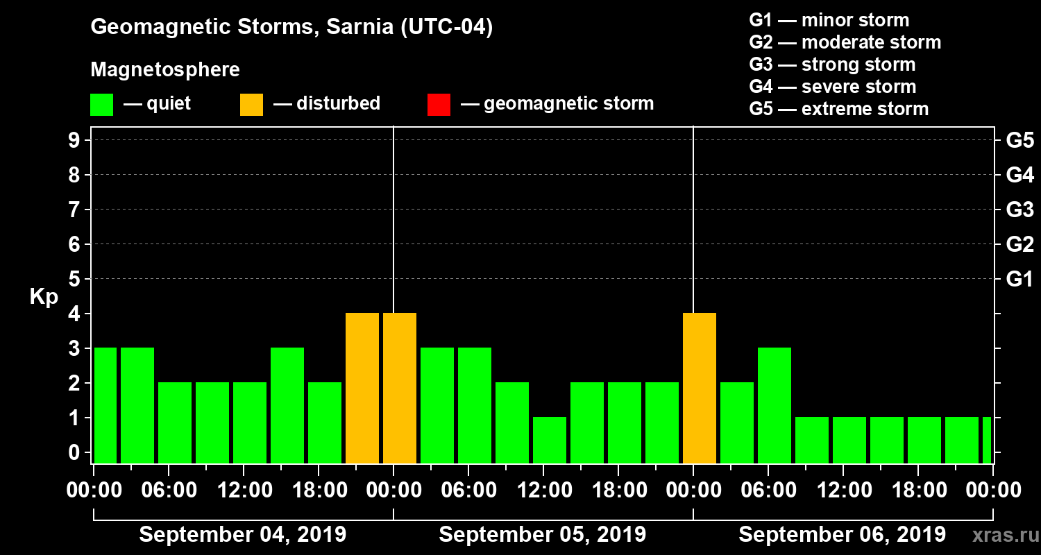 Geomagnetic storms in Sarnia in September 2019
