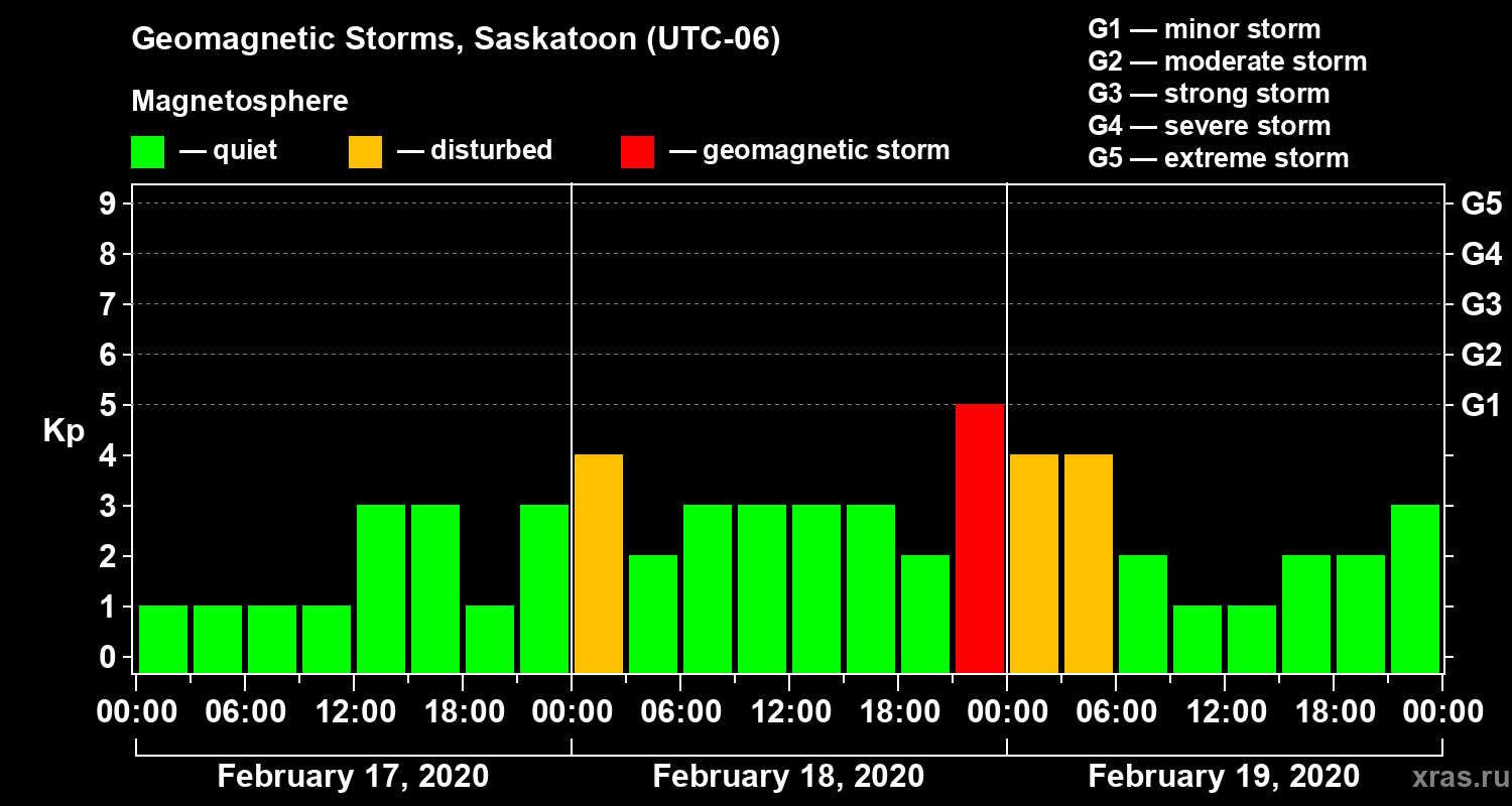Geomagnetic storms in Saskatoon — Feb 19, 2020