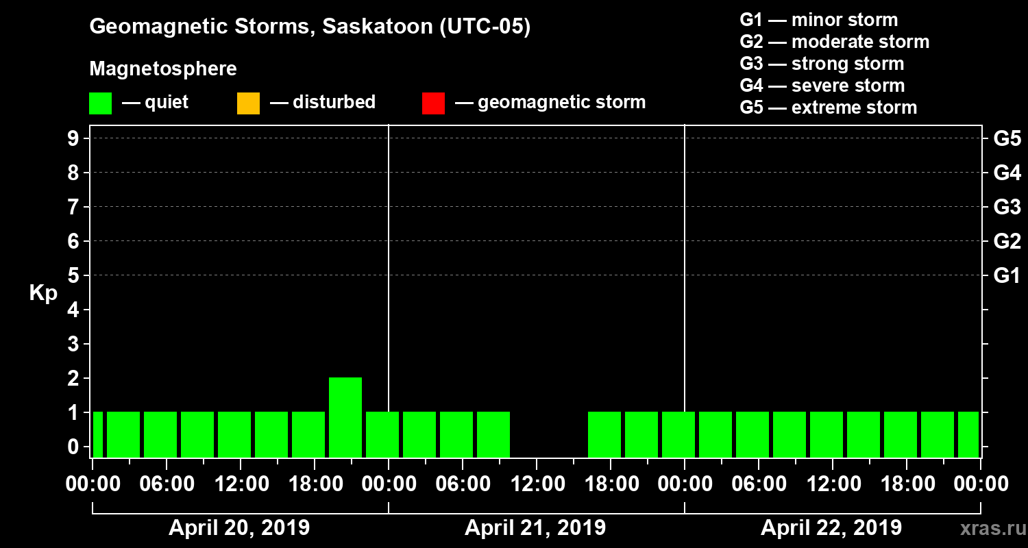 Geomagnetic storms in Saskatoon on Apr 22, 2019