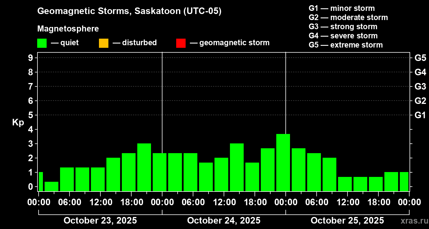 Geomagnetic storms in Saskatoon — Oct 25, 2025
