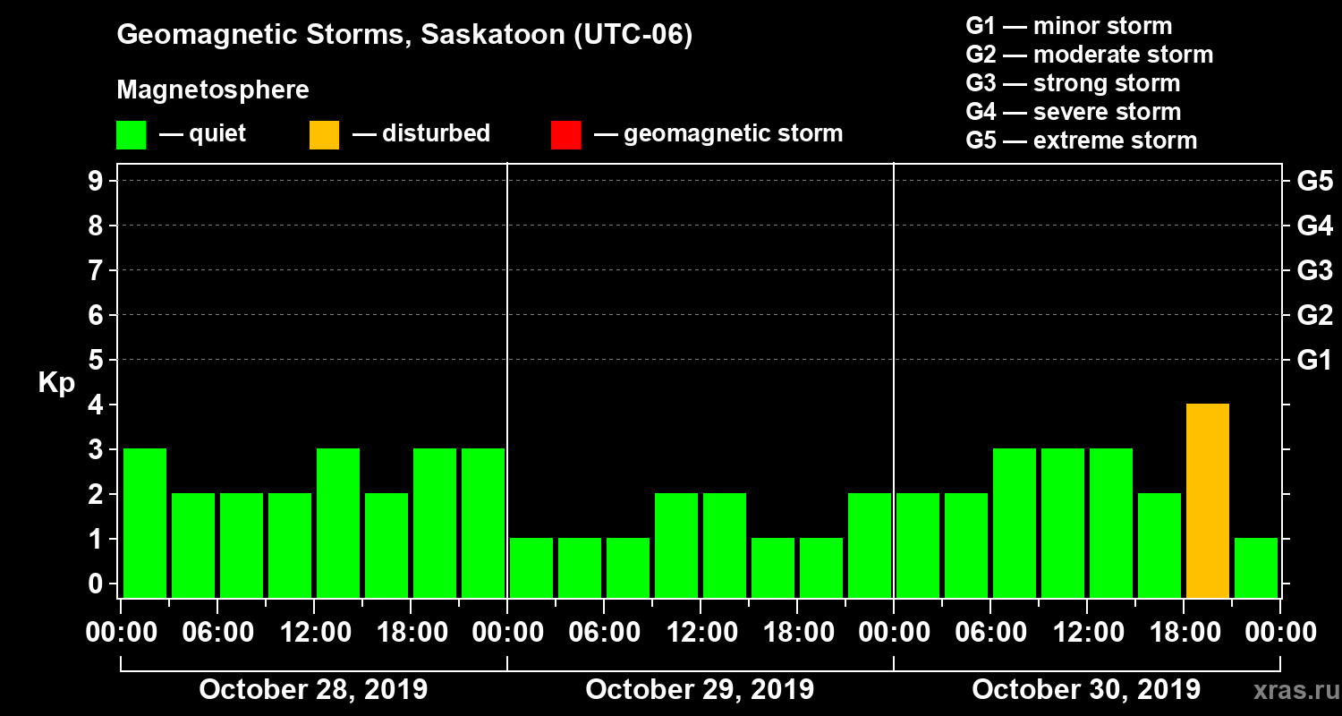 Geomagnetic storms in Saskatoon — Oct 30, 2019
