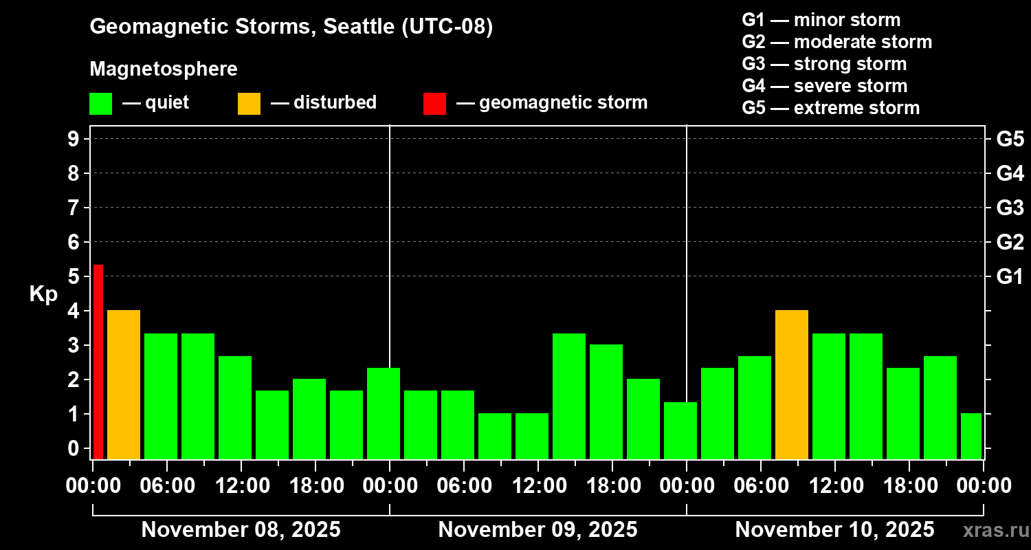 Geomagnetic storms in Seattle in November 2025