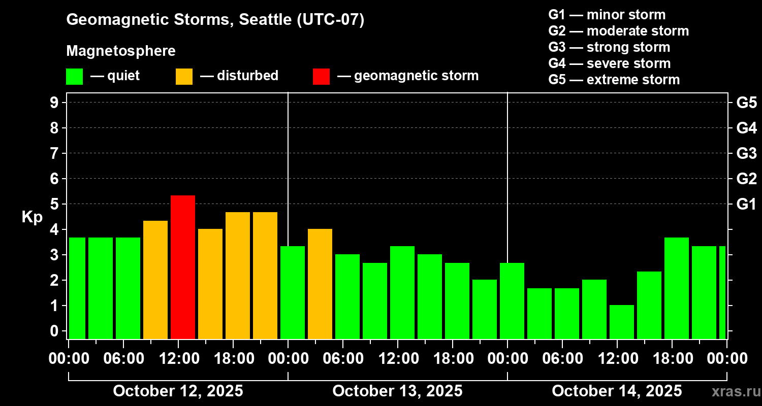 Geomagnetic storms in Seattle — Oct 14, 2025