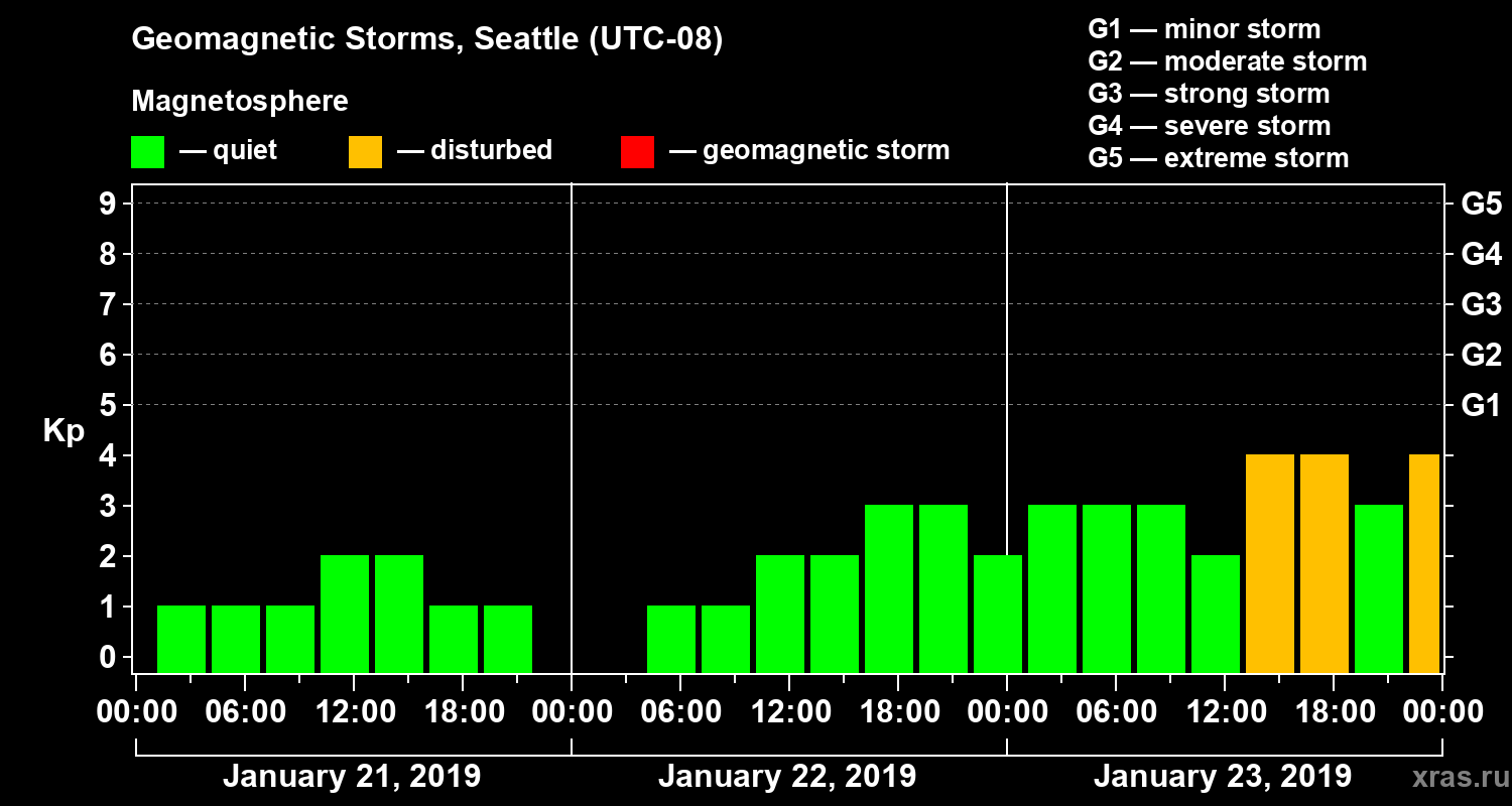 Geomagnetic storms in Seattle on Jan 23, 2019
