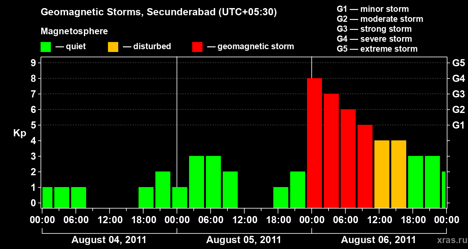 Geomagnetic storms in Secunderabad — Aug 06, 2011